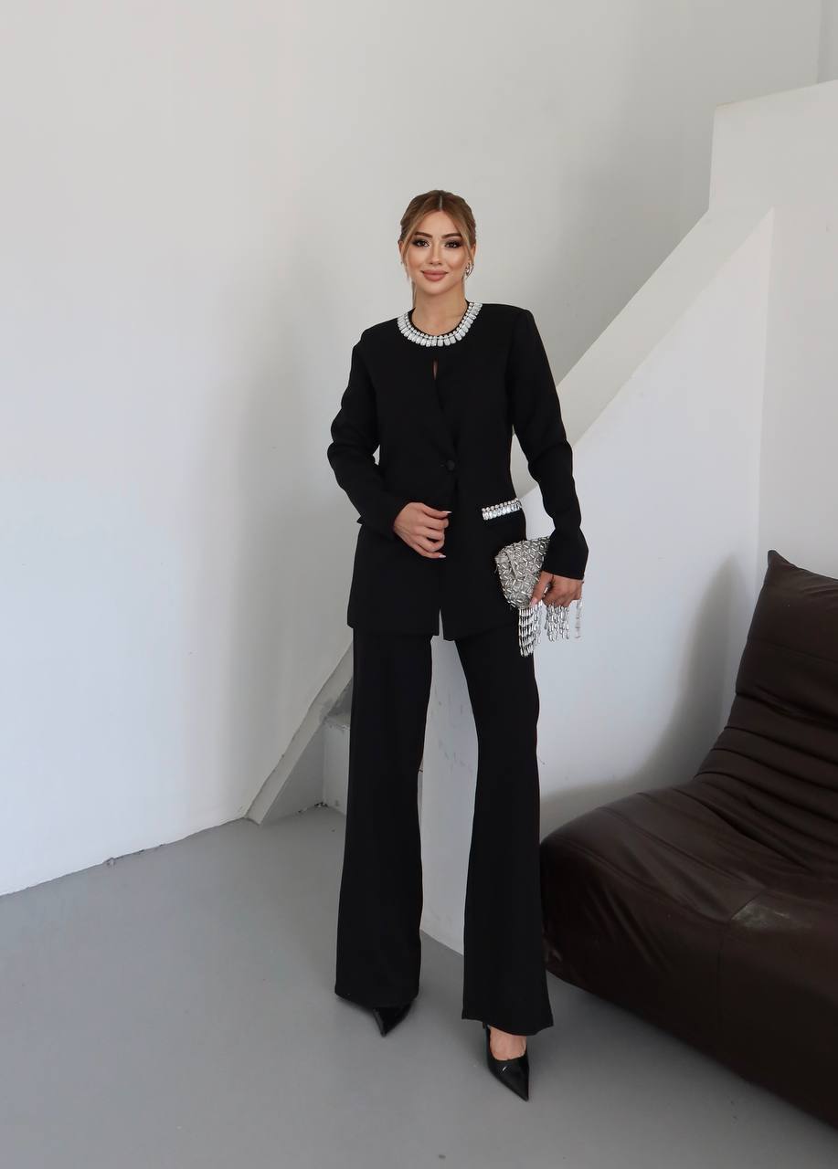 Fii întruchiparea puterii și a eleganței cu Compleul crystal boss, ținuta care transformă un costum clasic într-o piesă de lux demnă de covorul roșu. Acest set este creat pentru femeia care știe să îmbine autoritatea cu un glamour strălucitor.
