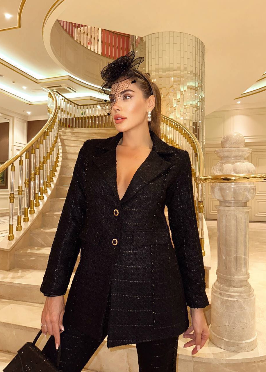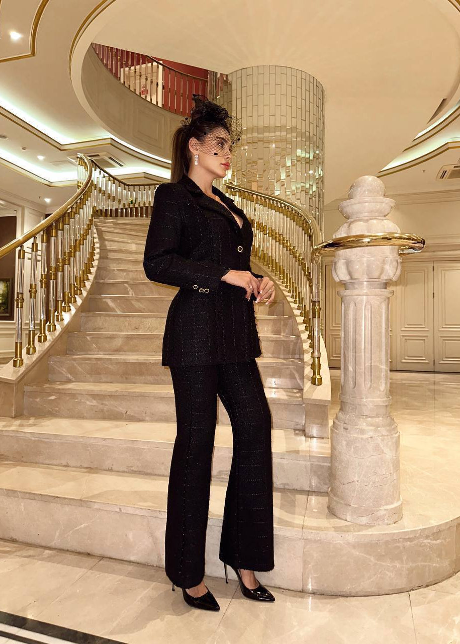 Clasic redefinit: un power-suit negru plin de atitudine.