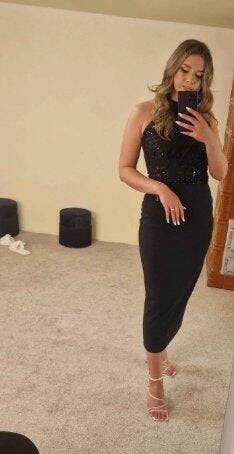 Croială Impecabilă: Croiala midi, tip creion, urmărește linia corpului, asigurând o siluetă alungită și sofisticată. Lipsa mânecilor (stil halter sau înalt) permite punerea în valoare a umerilor și a brațelor.