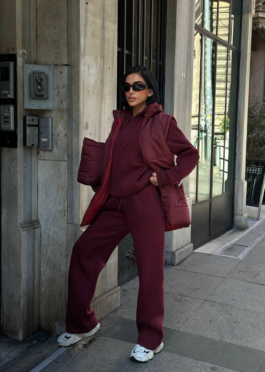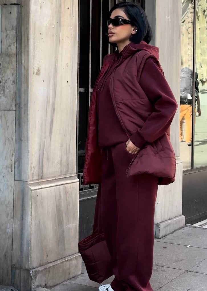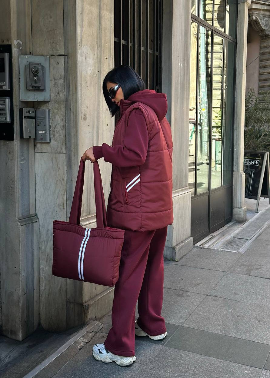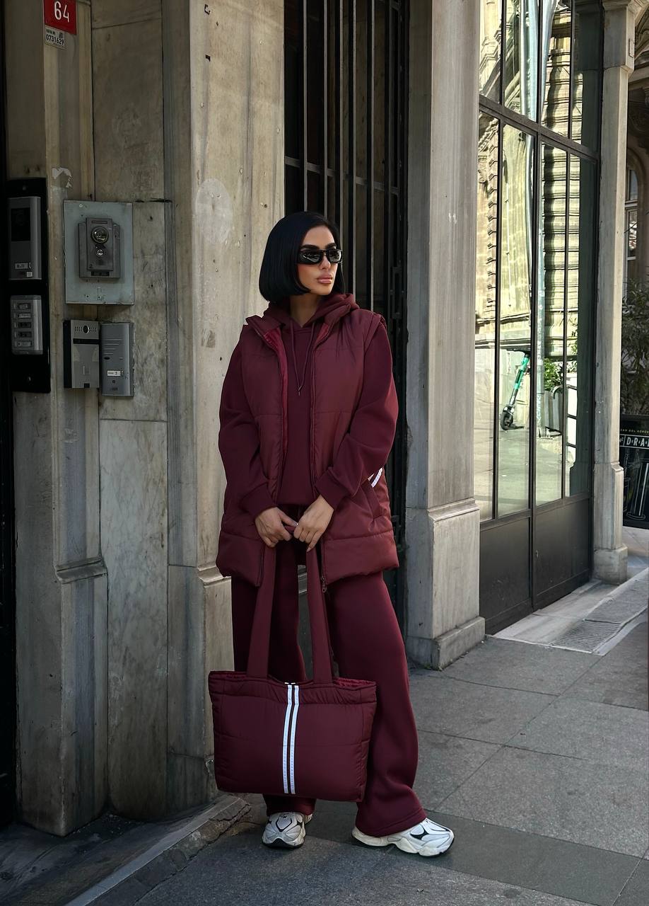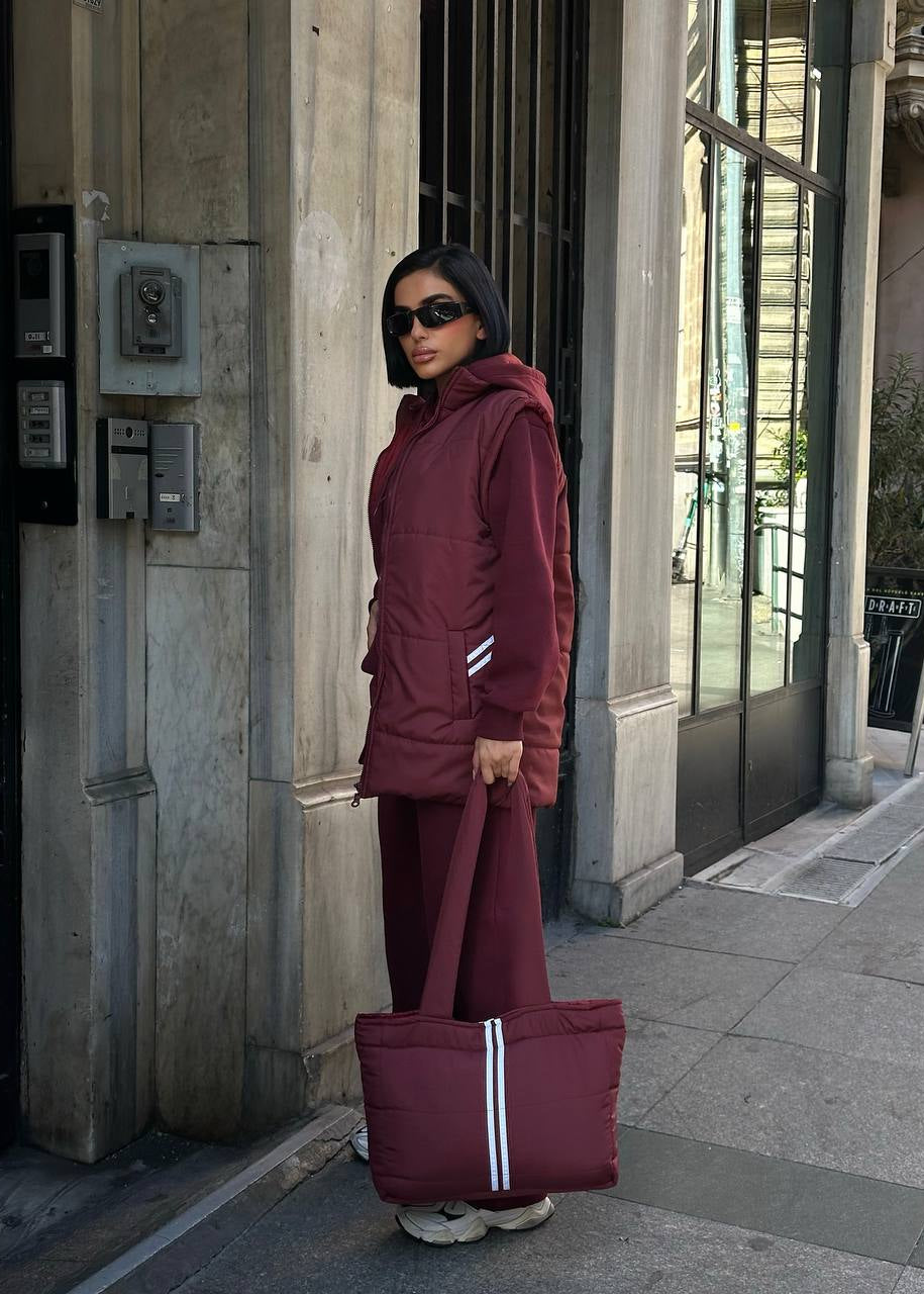 Atitudine și Funcționalitate: Fiecare piesă este realizată din materiale premium care asigură confort și rezistență. Textura matlasată a vestei și a genții adaugă un element de design modern. Croiala oversized a treningului asigură un vibe relaxat, dar statement.