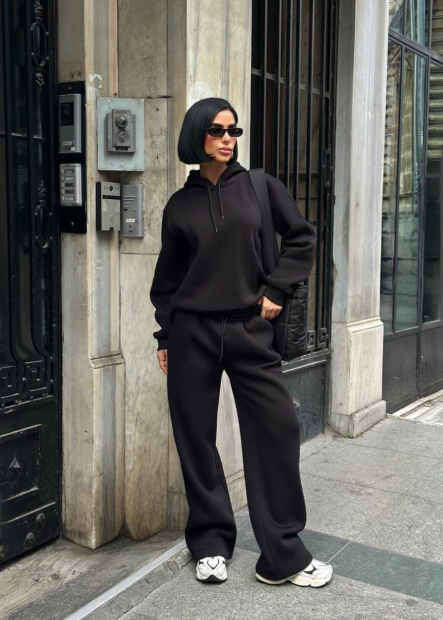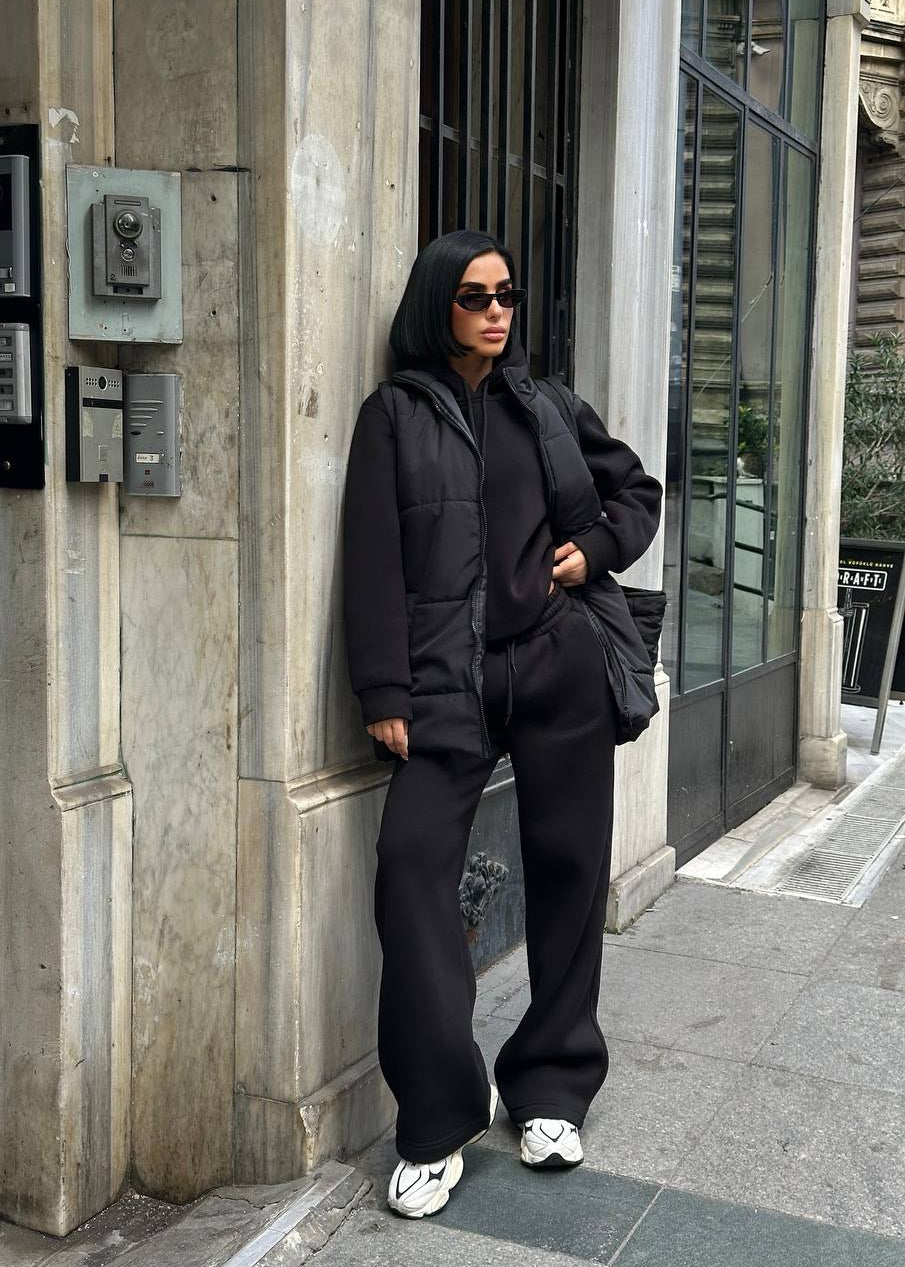 Atitudine și Funcționalitate: Fiecare piesă este realizată din materiale premium care asigură confort și rezistență. Textura matlasată a vestei și a genții adaugă un element de design modern. Croiala oversized a treningului asigură un vibe relaxat, dar statement.