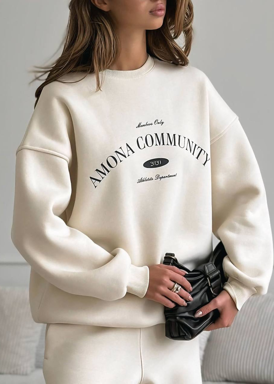Croială Modernă: Atât bluza cât și pantalonii au o croială oversized, care asigură o libertate de mișcare totală și un vibe casual chic. Bluza este completată de un logo discret, elegant, care adaugă un element de branding subtil.